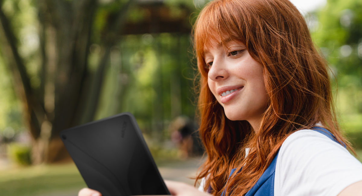 Profitez des meilleures conditions de lecture, où que vous soyez. Grâce à la fonction d'éclairage intégrée – permettant de diffuser la lumière sur le texte et non sur le visage de l'utilisateur ou sur ce qui l'entoure – et au paramétrage des couleurs, vous préservez vos yeux et vous assurez une expérience de lecture optimale en toutes circonstances.